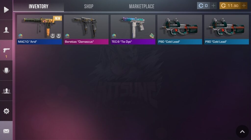 1) Открываем инвентарь и находим скин, который хотим выставить на Торговую Площадку. Внимание, этот скин Вы не сможете получить обратно, а прощаетесь с ним навсегда. Также, скин ОБЯЗАТЕЛЬНО должен иметь специальный ПАТТЕРН