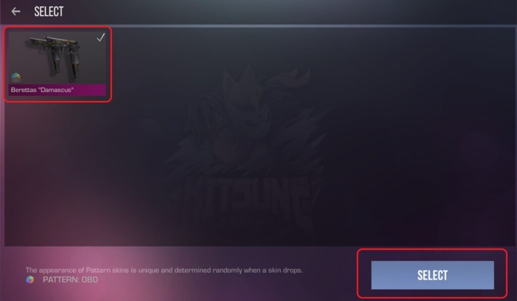 4) Повторно кликаем на наш скин, после нажимаем на синюю кнопку «SELECT»