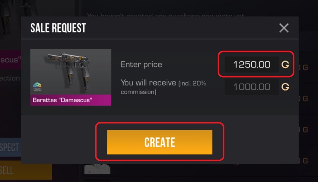 5) Далее вводим цену, которая была указана на сайте в строке «Скин на сумму» при покупке. После, нажимаем на кнопку «Create»