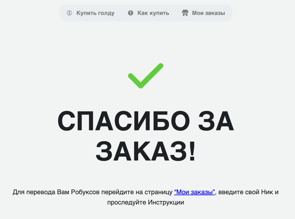 Заказ переходит в раздел «Мои заказы», где Вы сможете проследовать дальнейшей инструкции, введя свой ник